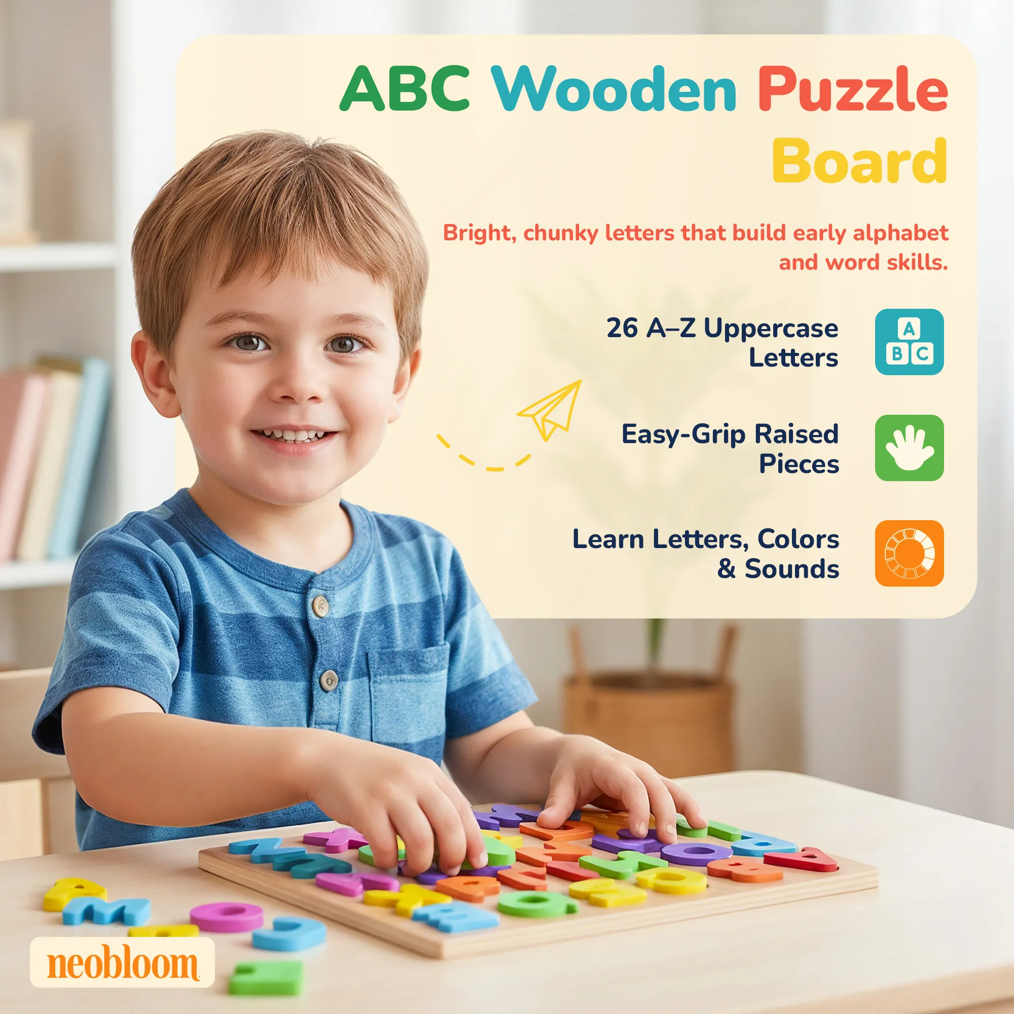 ALPHABET PUZZLE FOR EARLY LITERACY – Large, colourful wooden letters help children recognize A–Z, build phonics awareness, improve vocabulary, and strengthen memory through hands-on learning